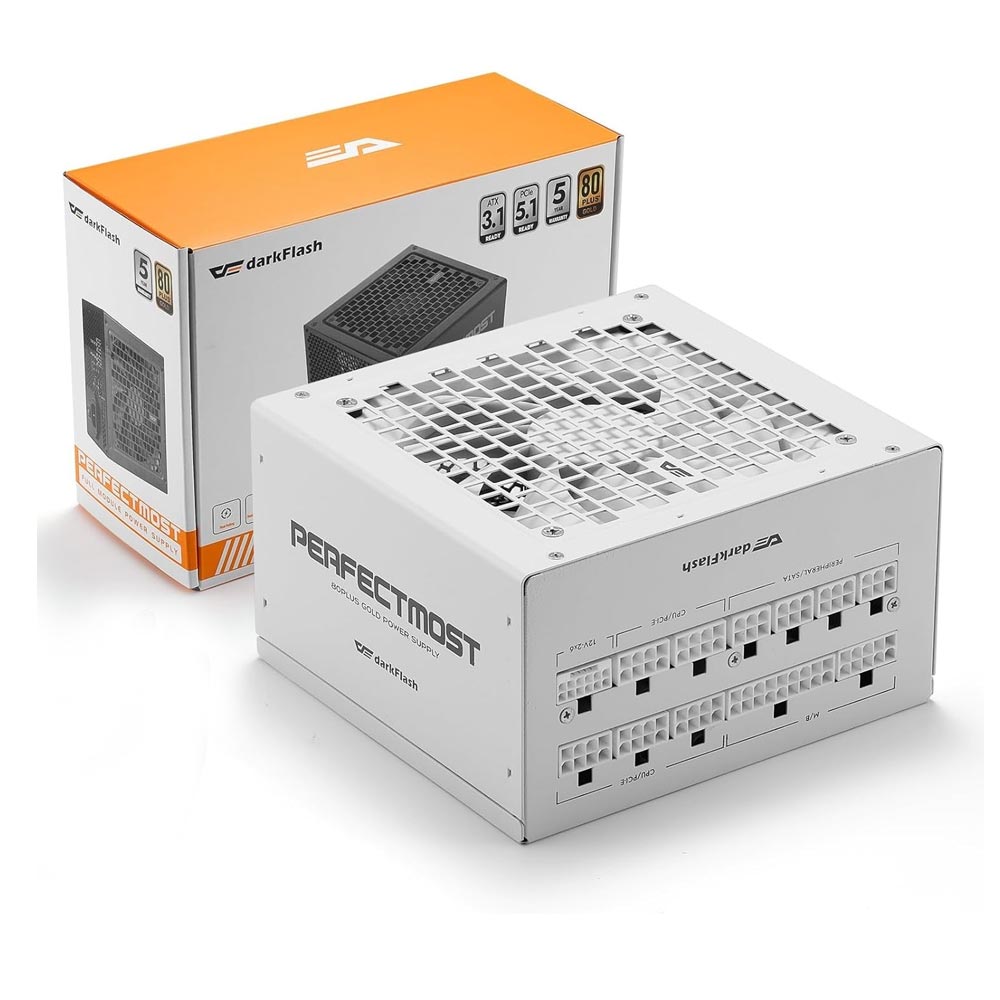 Nguồn máy tính DarkFlash PMT 850 White -850W GOLD ATX 3.1, PCIe 5.1 (850W/ 80 Plus Gold/ Full-Modular/ ATX/ Trắng)