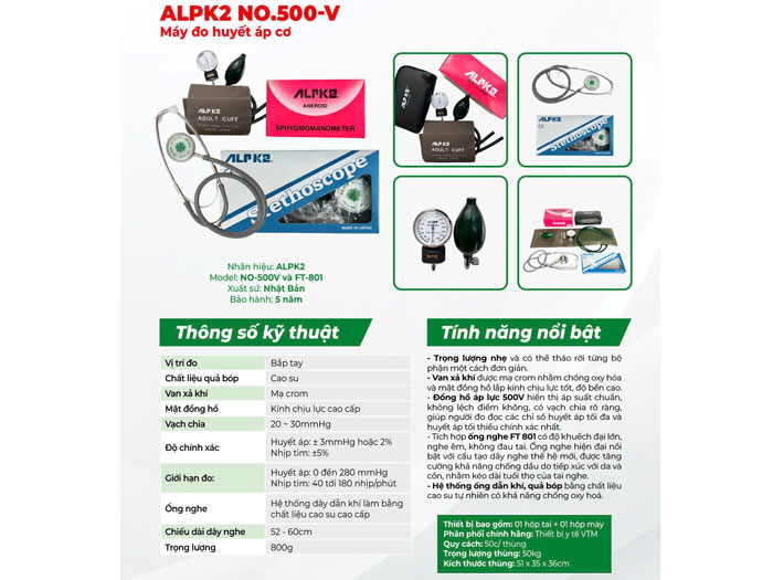 Máy đo huyết áp cơ ALPK2 NO.500-V (kèm tai nghe nhịp tim) |