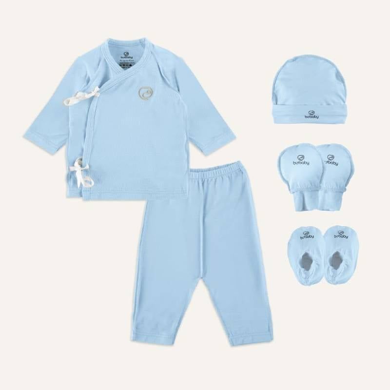 BỘ DÀI TAY BU BABY CÀI CHÉO KÈM MŨ, BAO TAY CHÂN SINH NON PREEMIE - BLUE