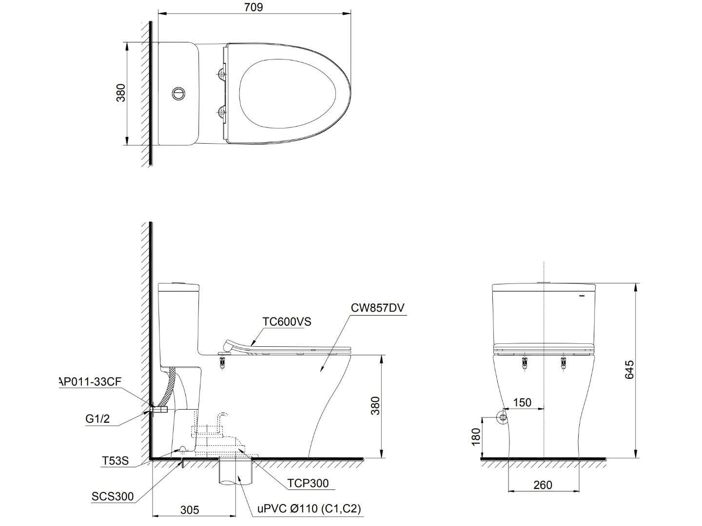 Bồn cầu 1 khối Toto MS857DT8 nắp TC600VS