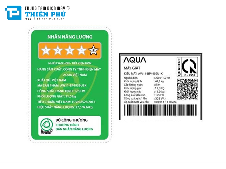 Bạn đang chuyển đến trang bán sản phẩm Máy Giặt Aqua 11 Kg AW11-BP4959U1K(B)