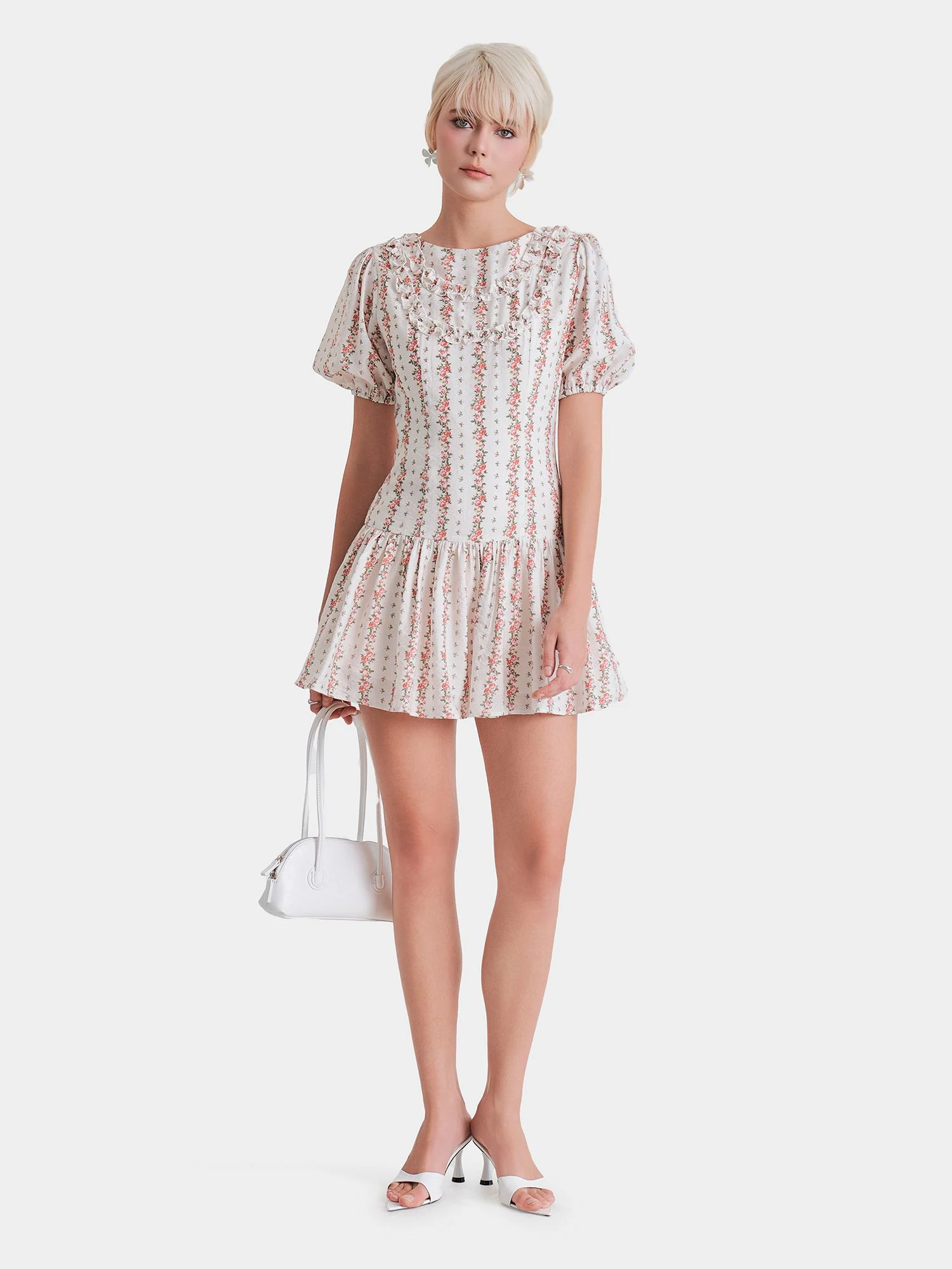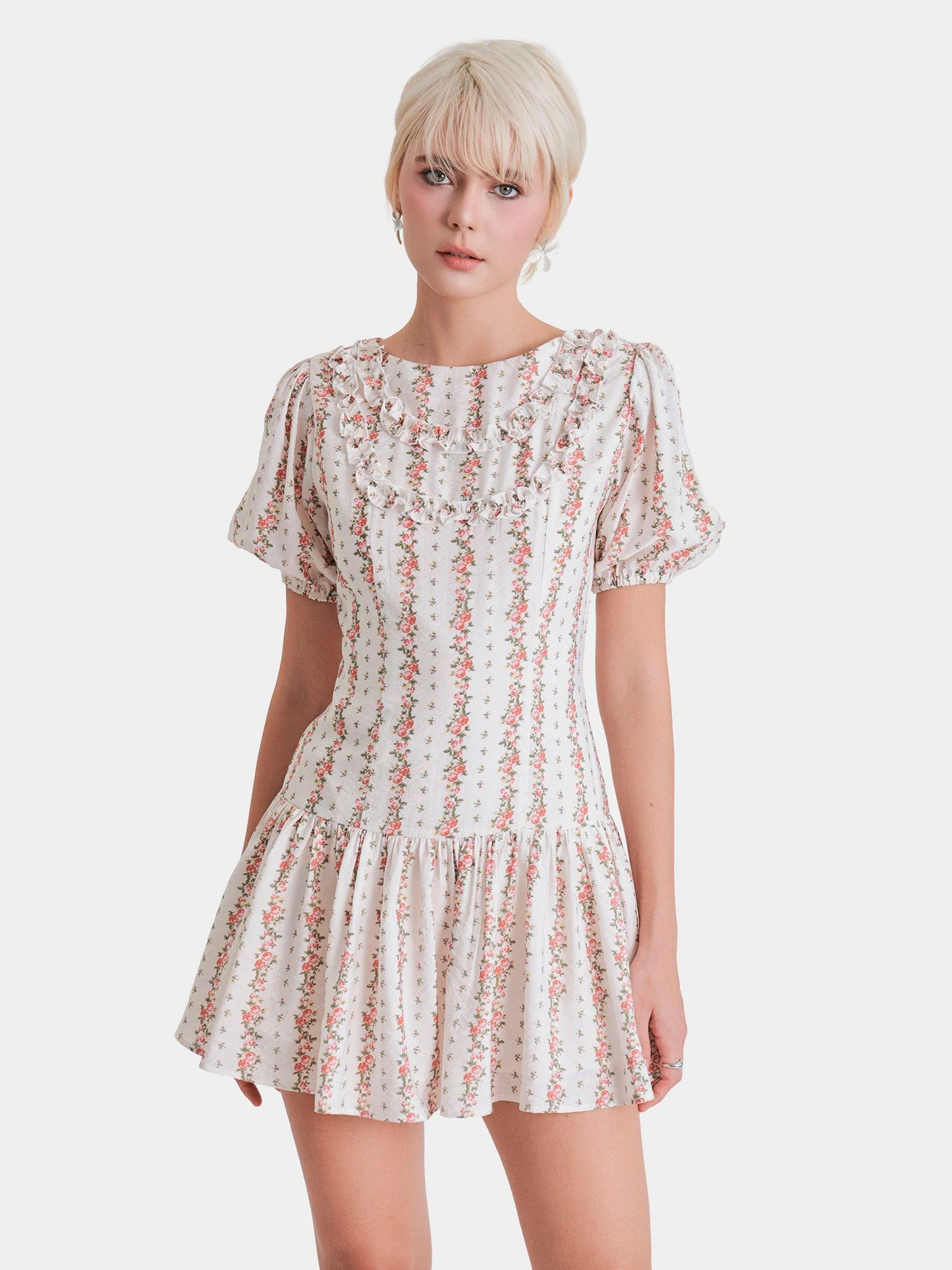 Bạn đang chuyển đến trang bán sản phẩm Marc - Đầm mini hoa hạ eo tay phồng cổ tròn