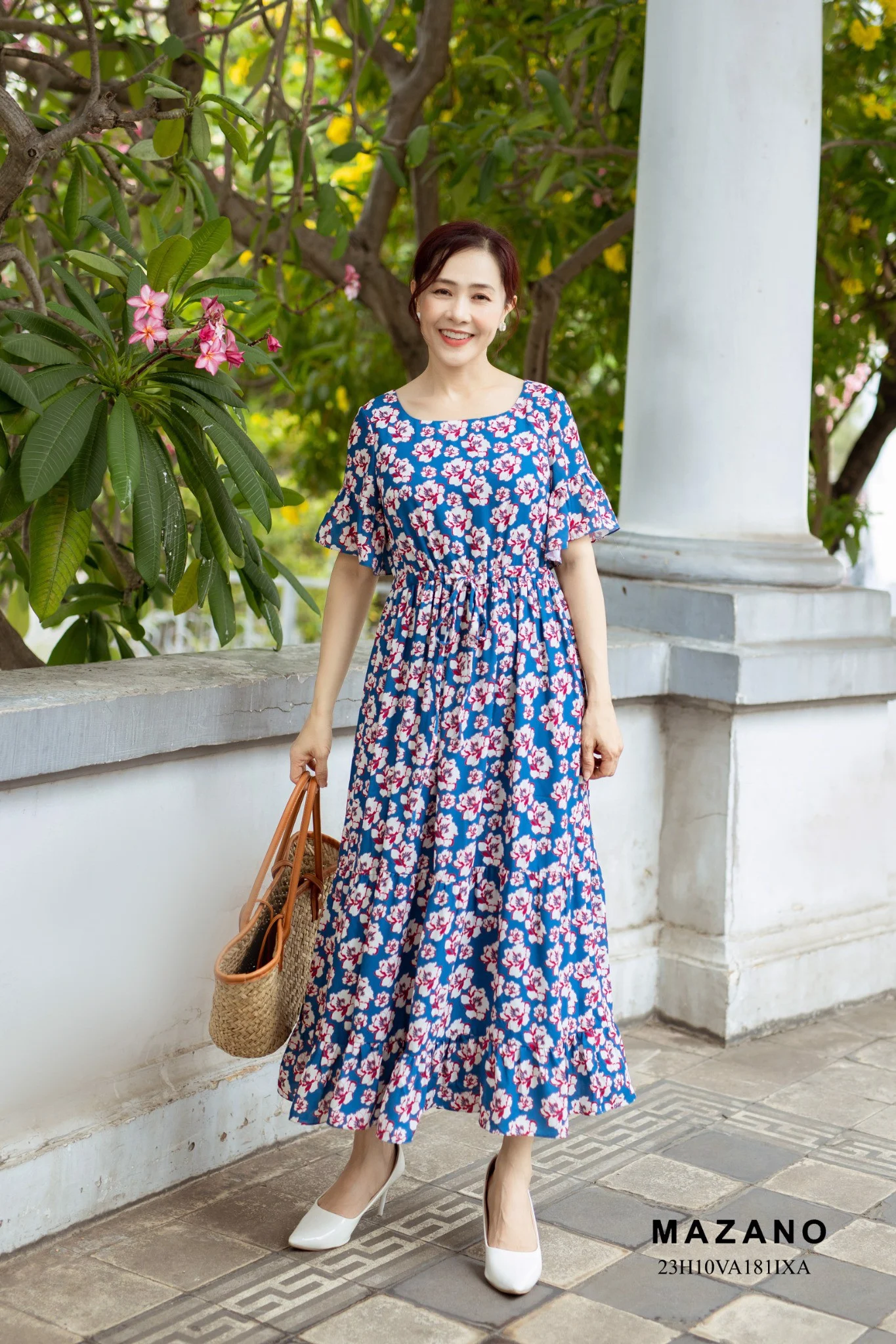 Bạn đang chuyển đến trang bán sản phẩm Đầm xanh rút dây eo phối bèo nữ tính