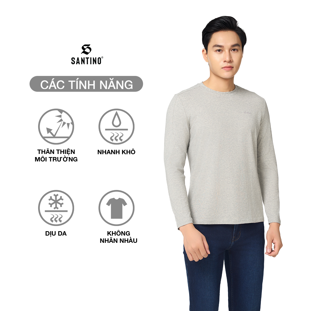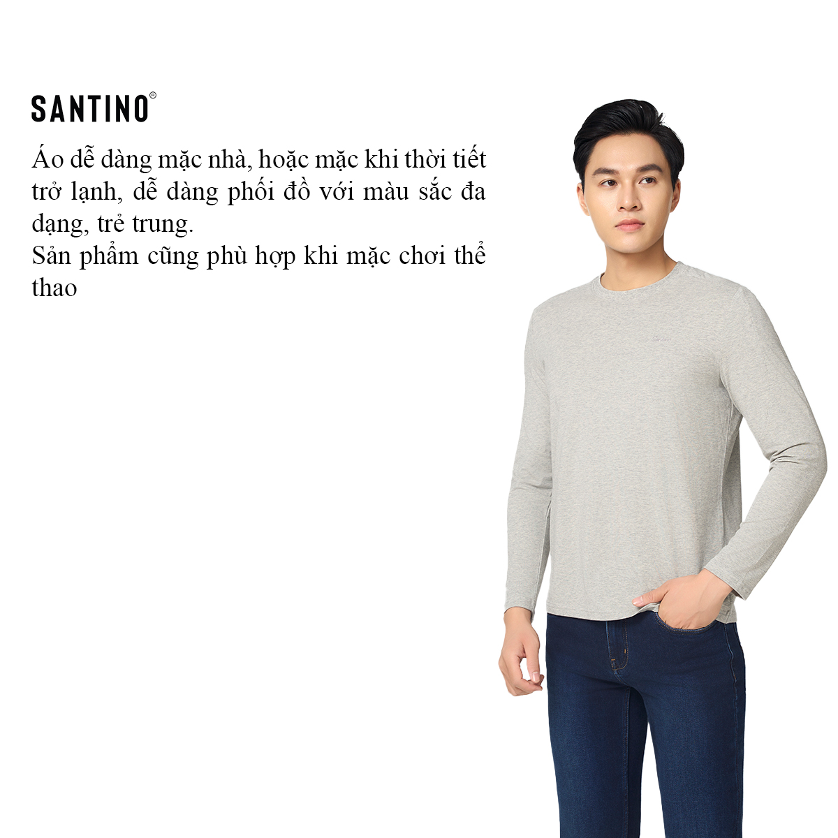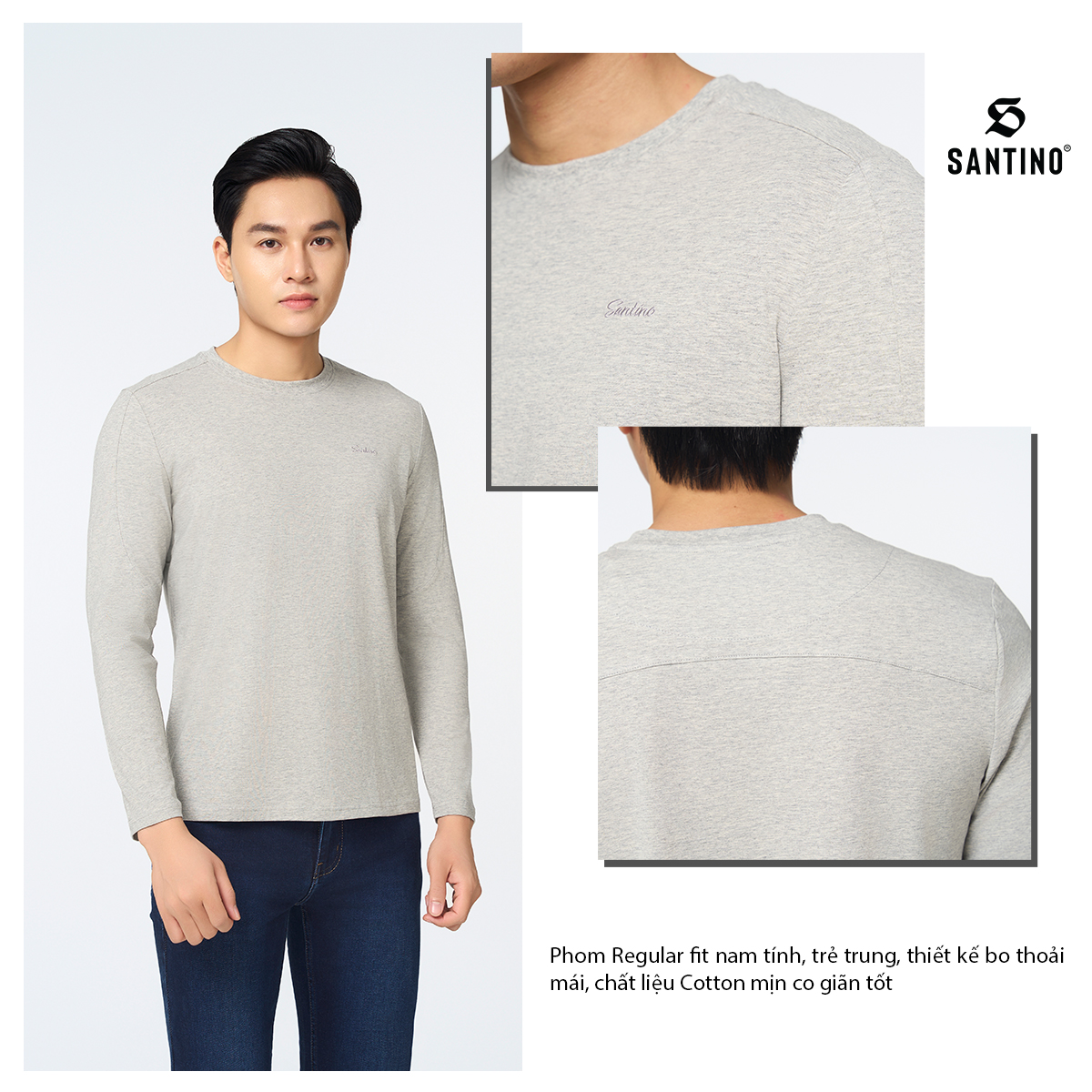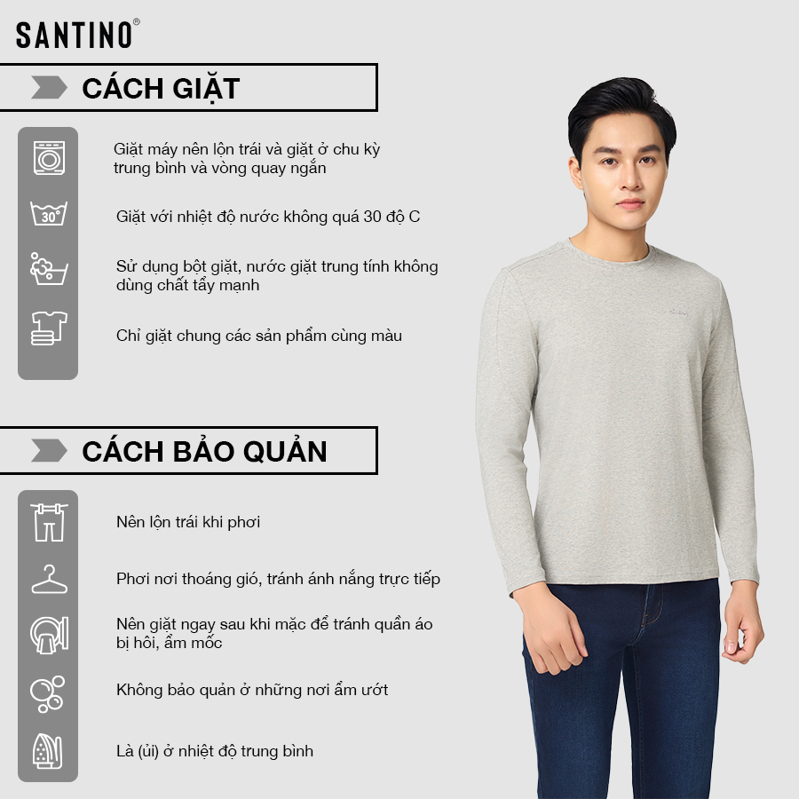 Bạn đang chuyển đến trang bán sản phẩm SANTINO - Áo Thun Nam Dài Tay Thu Đông Cổ Tròn, Cotton Giữ Ấm, Khoẻ Khoắn, Trẻ Trung P712