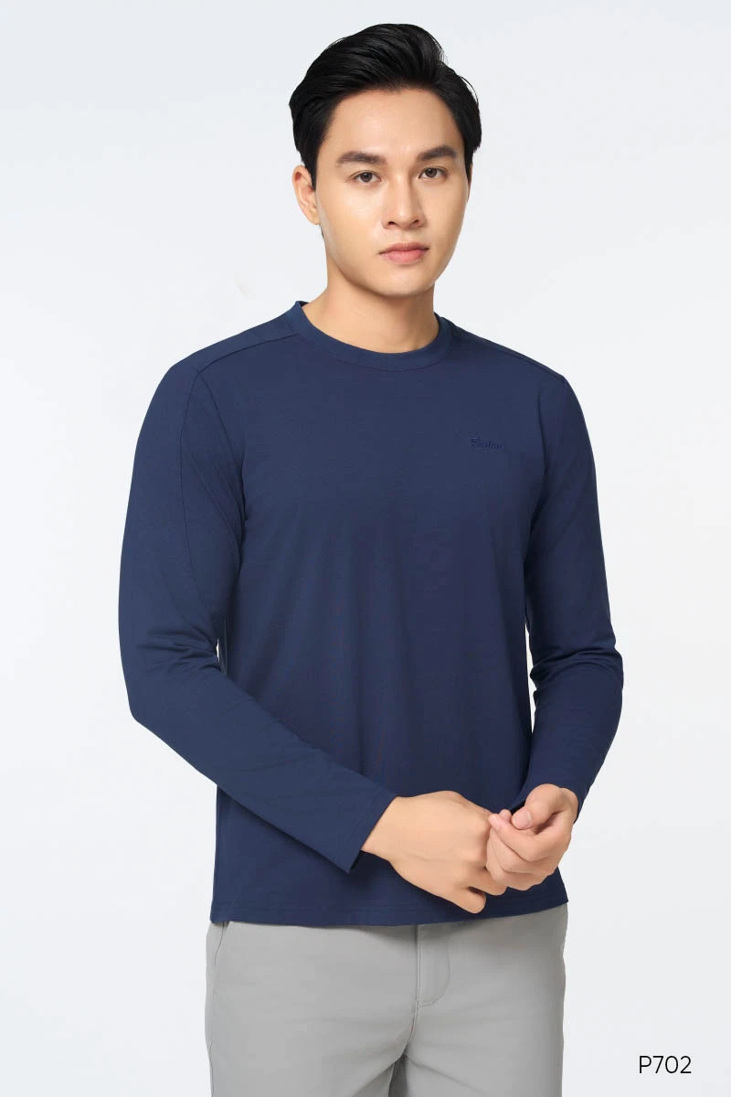 SANTINO - Áo Thun Nam Dài Tay Thu Đông Cổ Tròn, Cotton Giữ Ấm, Khoẻ Khoắn, Trẻ Trung E702