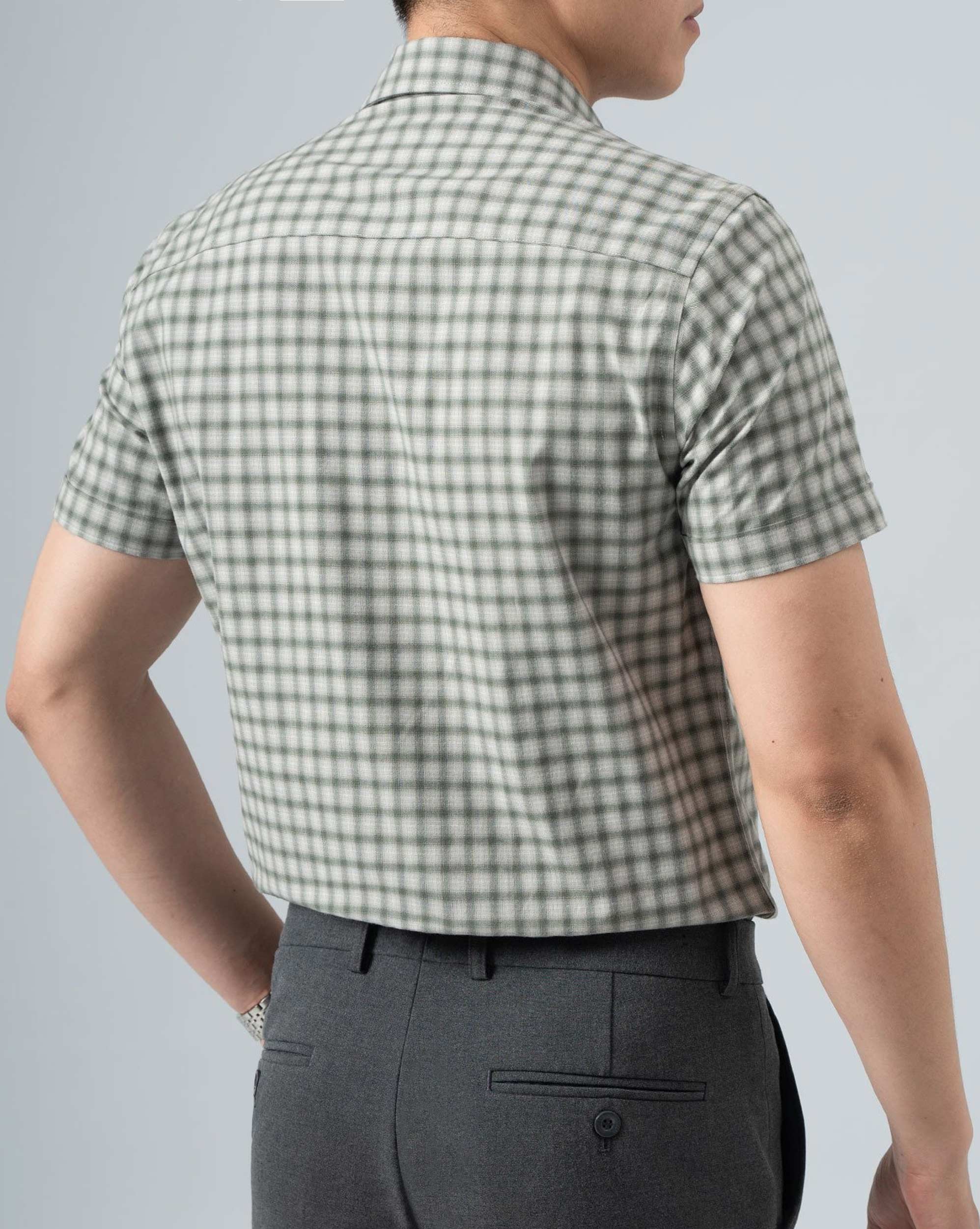 Áo sơ mi ngắn tay nam kẻ caro màu xanh rêu 4025A
