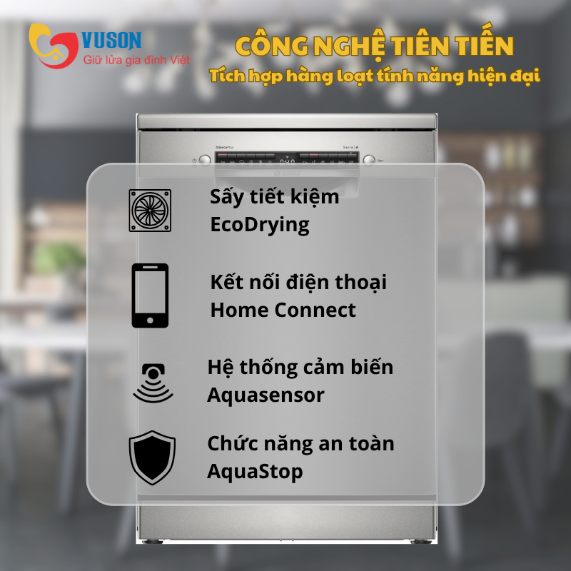 MÁY RỬA BÁT BOSCH ĐỘC LẬP SMS4ECI14E SERIE 4 SẤY HÉ CỬA | KhanhTrangHome |