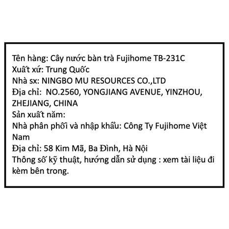 Bạn đang chuyển đến trang bán sản phẩm Cây nước nóng lạnh FUJIHOME TB-231C 1460W