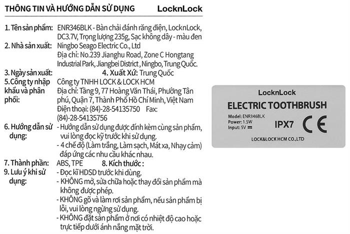 Bàn chải điện Lock&Lock ENR346BLK