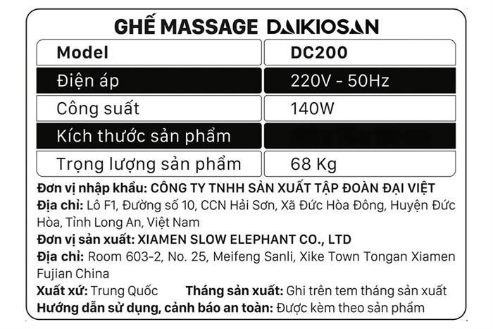 Ghế massage Daikiosan DC200