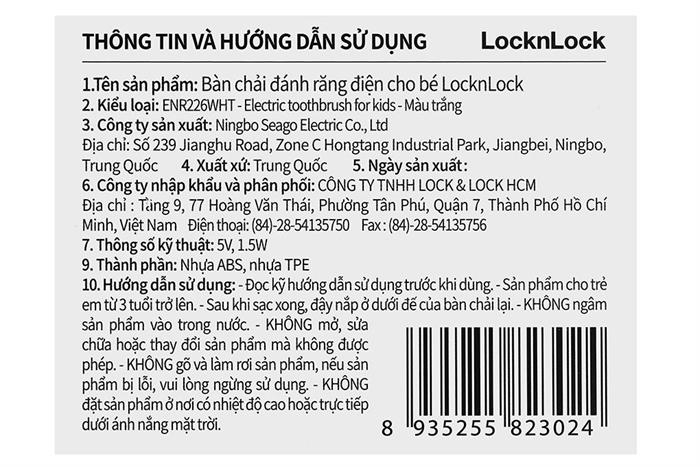 Bàn chải điện trẻ em Lock&Lock ENR226WHT