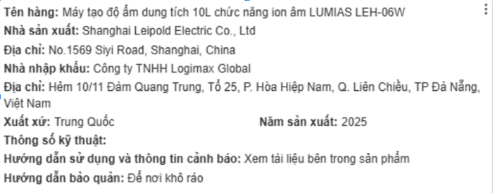 Bạn đang chuyển đến trang bán sản phẩm Máy tạo độ ẩm LUMIAS LEH-06W