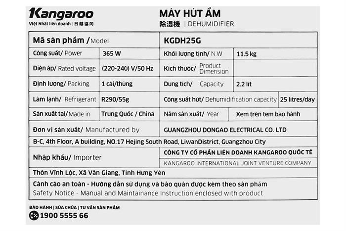 Máy hút ẩm Kangaroo KGDH25G
