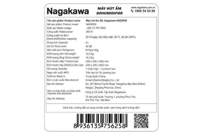 Máy hút ẩm kết hợp lọc không khí Nagakawa NAD8559