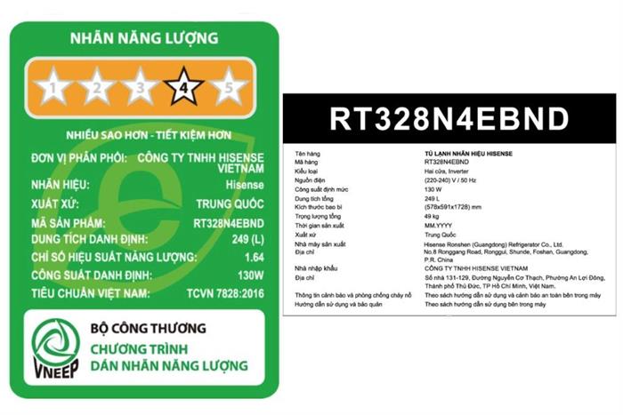 Tủ lạnh Hisense Inverter 249 lít RT328N4EBND