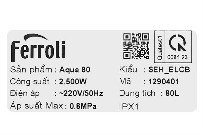 Máy nước nóng gián tiếp Ferroli Aqua 80 lít 2500W SEH_ELCB