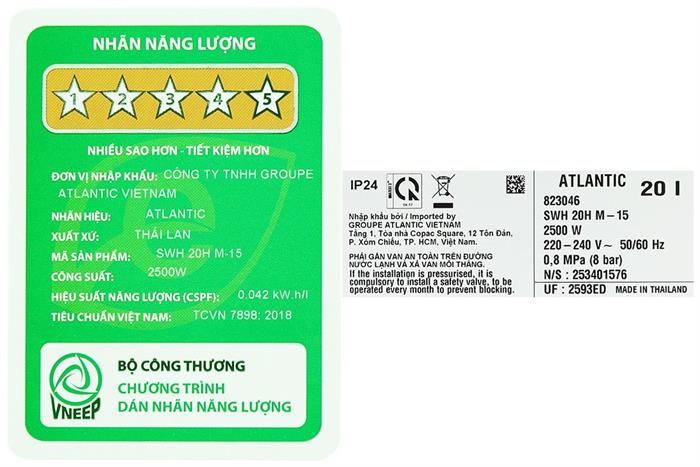Máy nước nóng gián tiếp Atlantic 20 lít SWH 20H M-15 ESA PRO 823046