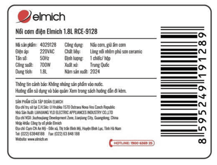 Bạn đang chuyển đến trang bán sản phẩm Nồi cơm điện Elmich 1.8 lít RCE-9128
