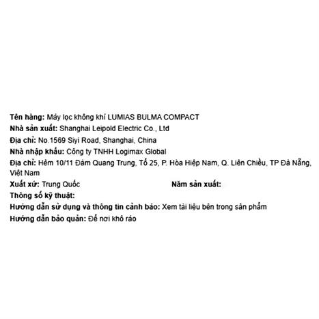 Bạn đang chuyển đến trang bán sản phẩm Máy lọc không khí LUMIAS BULMA COMPACT 23W