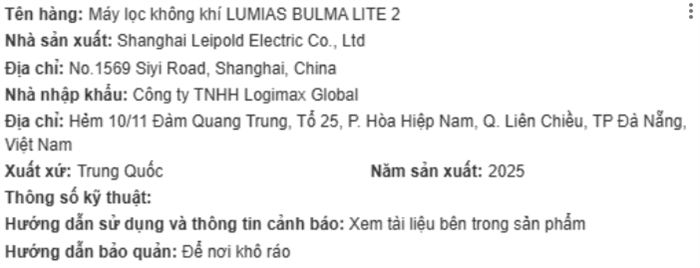Bạn đang chuyển đến trang bán sản phẩm Máy lọc không khí LUMIAS BULMA LITE 2 50W