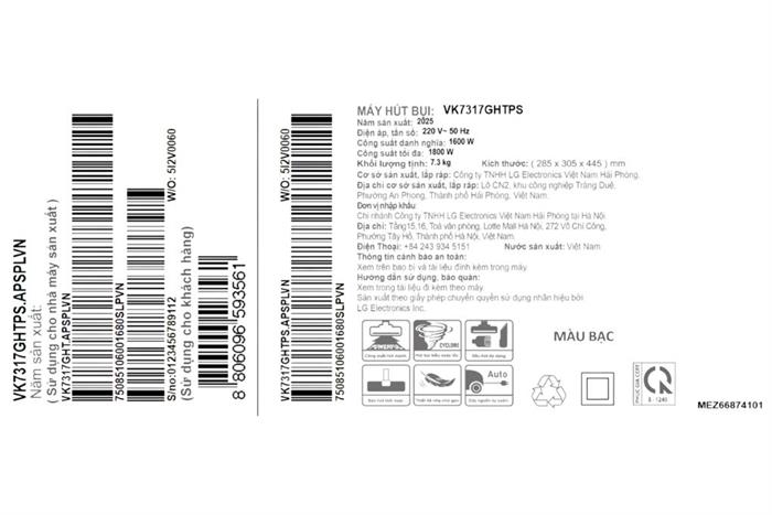Máy hút bụi dạng hộp LG VK7317GHTPS