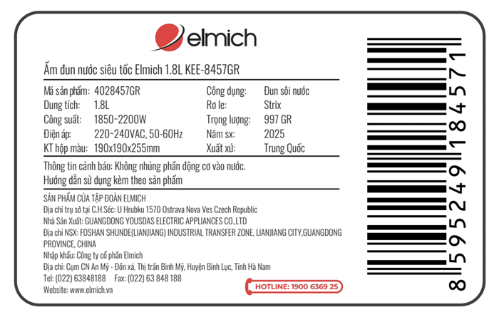 Bình đun siêu tốc Elmich 1.8 lít KEE-8457GB | Dien May Xanh |