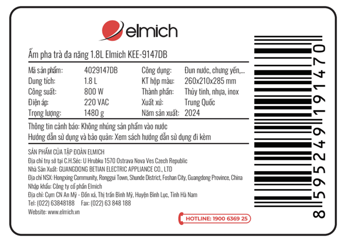Bình đun siêu tốc Elmich 1.8 lít KEE-9147DB