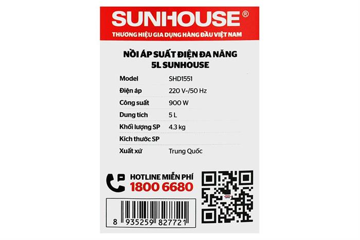NỒI ÁP SUẤT ĐIỆN ĐA NĂNG SUNHOUSE SHD1562 | KhanhTrangHome |
