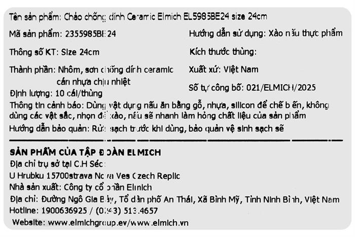 Chảo nhôm chống dính đáy từ 24 cm Elmich EL5985BE24