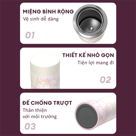 Bình giữ nhiệt inox 300 ml Hoa Anh Đào GERM GE-24SS-DB82