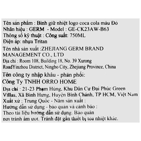 Ly giữ nhiệt inox 750 ml Ice Box Coca Cola GERM GE-CK23AW-B63