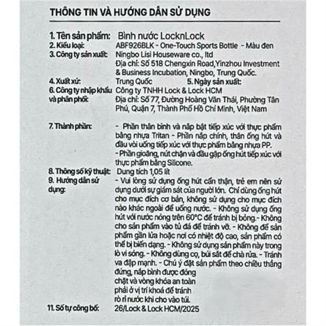 Bạn đang chuyển đến trang bán sản phẩm Bình đựng nước nhựa Tritan 1050 ml Lock&Lock ABF926BLK