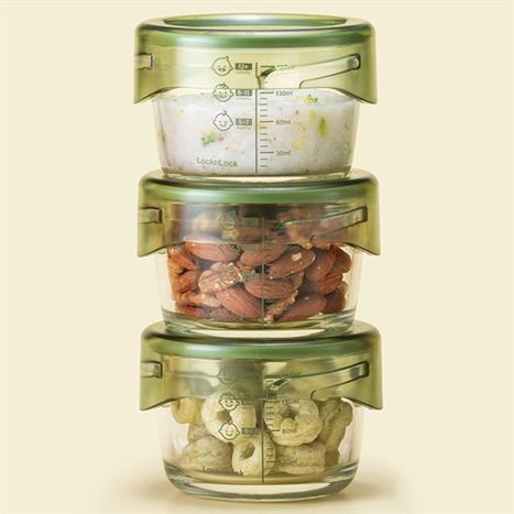 Bộ 3 hộp đựng thực phẩm thuỷ tinh 215 ml Lock&Lock LLG540S3GRN