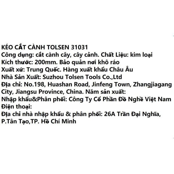 224,000đ | 150,000đ | 150000 | TOLSEN-31020 | Kéo Cắt Cành | |