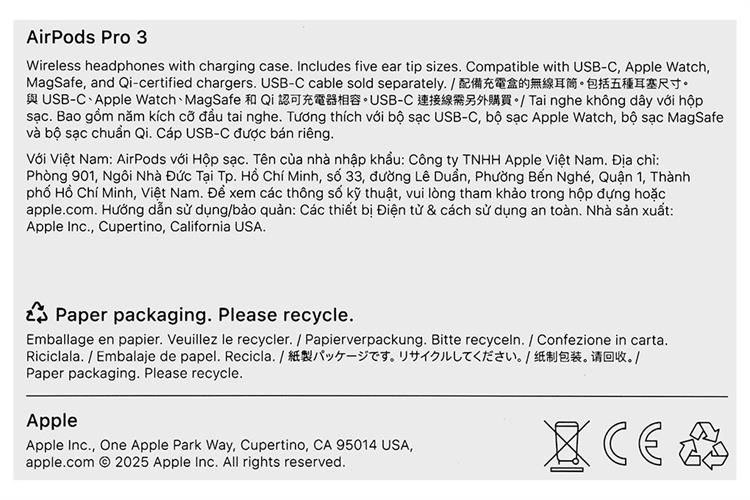 Tai nghe Bluetooth Apple AirPods Pro 3 Trắng MFHP4