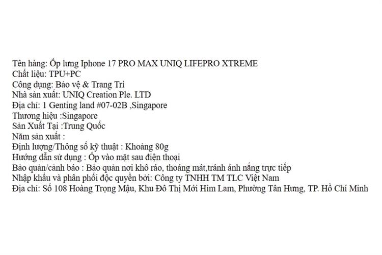 Bạn đang chuyển đến trang bán sản phẩm Ốp lưng iPhone 17 Pro Max PC TPU UNIQ LIFEPRO XTREME