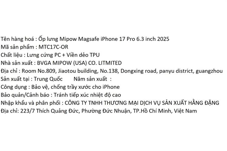 Bạn đang chuyển đến trang bán sản phẩm Ốp lưng MagSafe iPhone 17 Pro PC TPU MIPOW MTC17C-OR