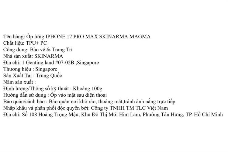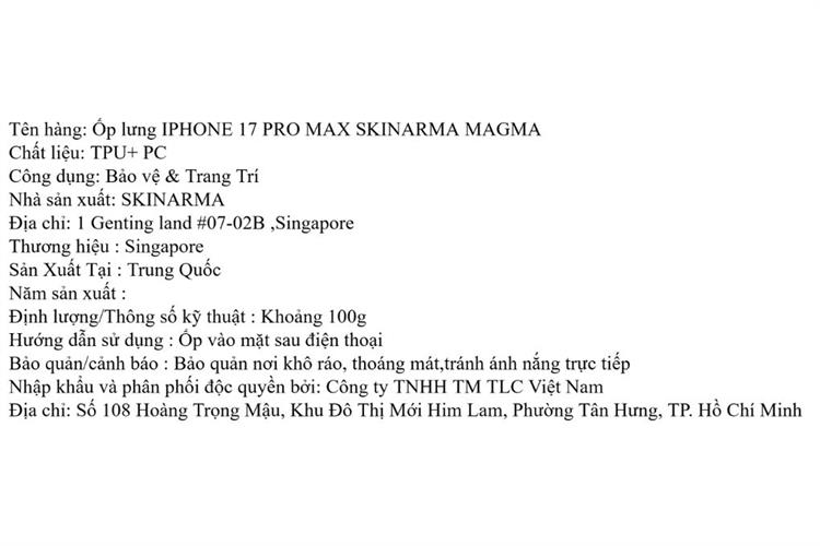 Bạn đang chuyển đến trang bán sản phẩm Ốp lưng MagSafe iPhone 17 Pro Max PC TPU SKINARMA MAGMA