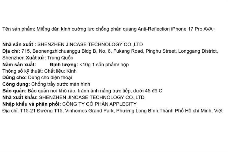 Miếng dán kính cường lực chống phản quang Anti-Reflection iPhone 17 Pro AVA+