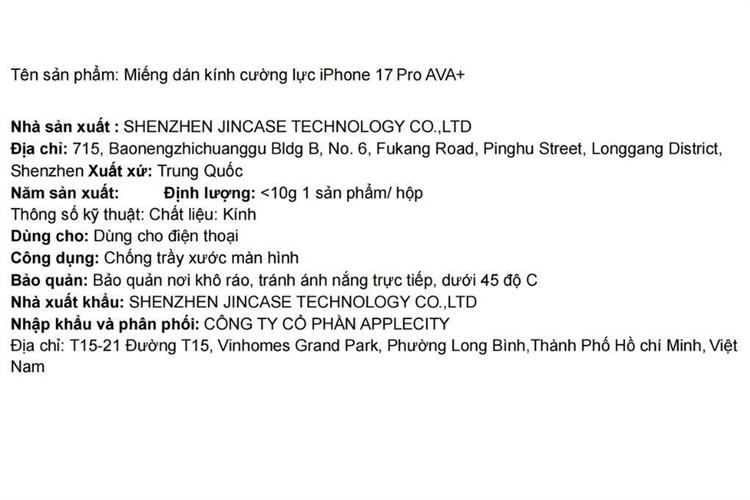 Bạn đang chuyển đến trang bán sản phẩm Miếng dán kính cường lực iPhone 17 Pro AVA+