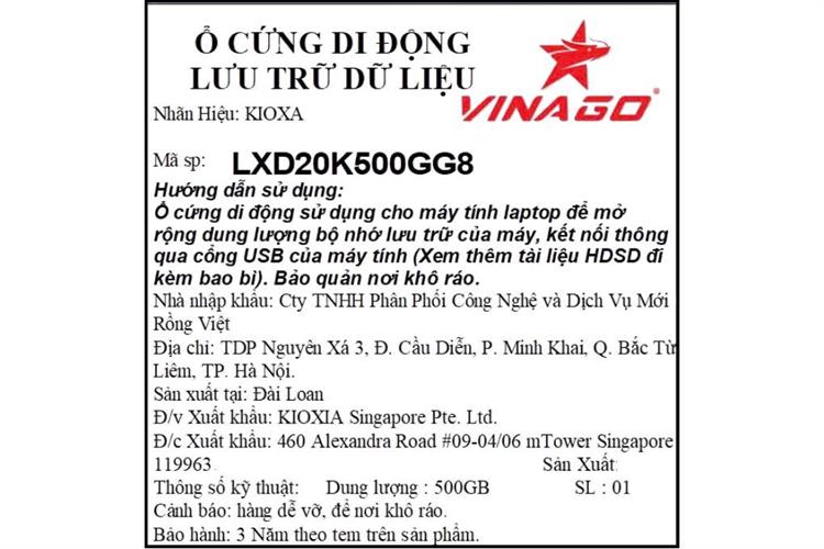 Ổ cứng SSD 500GB Kioxia Exceria Plus G2 Portable LXD20K500GG8