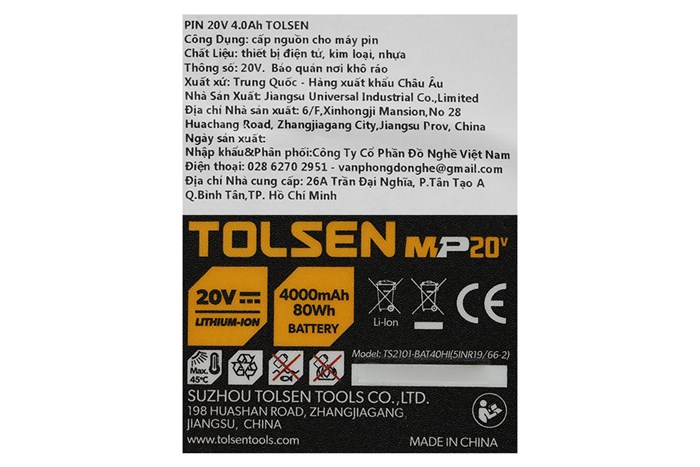 Bạn đang chuyển đến trang bán sản phẩm Pin Tolsen 87474 20V 4.0 Ah