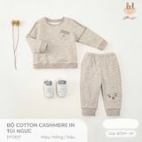 BỘ COTTON LIL CASHMERE IN TÚI NGỰC KEM NÂU