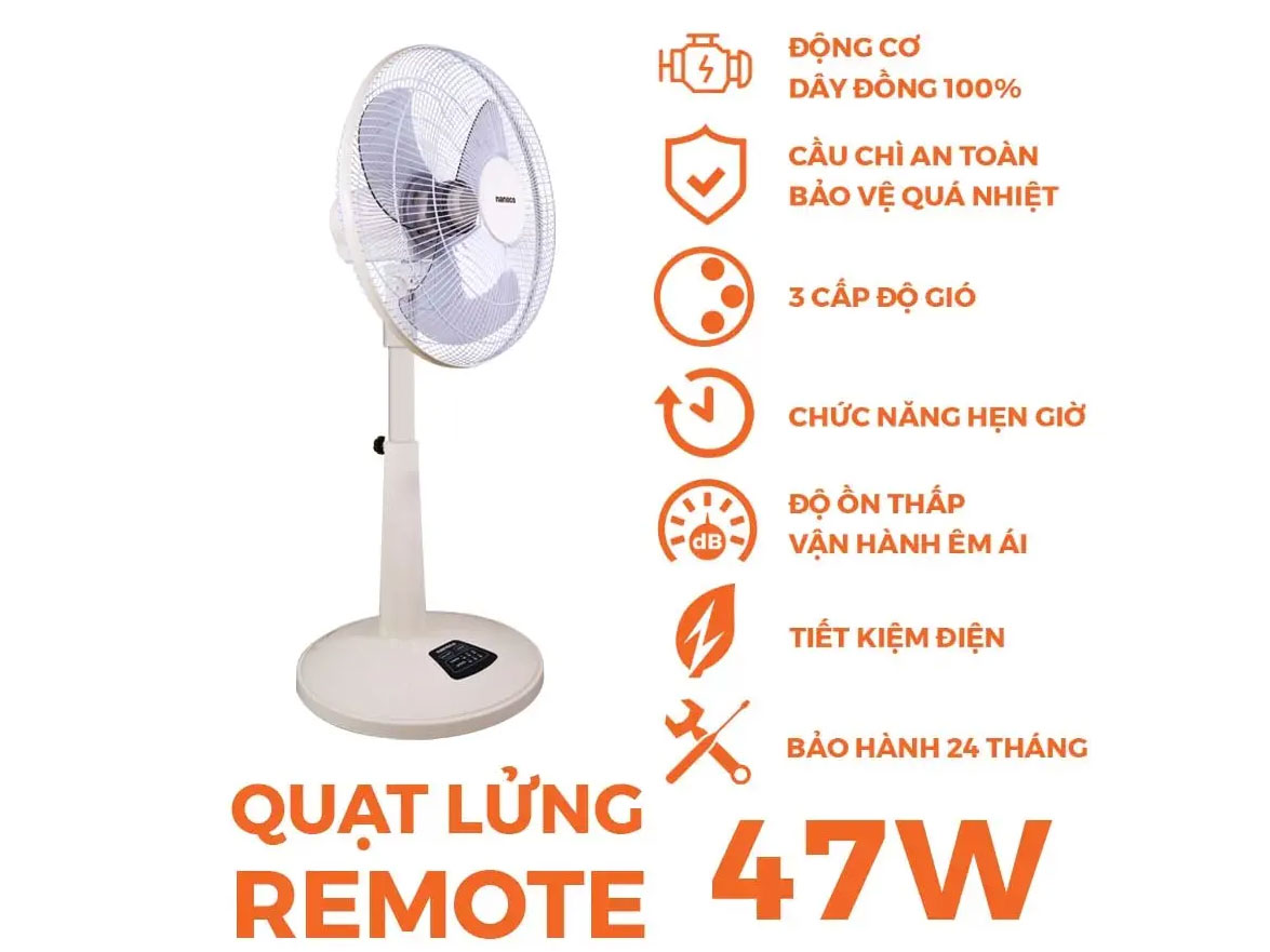 | Quạt lửng Nanoco NLF1624RC-BE | Nguyen Kim |