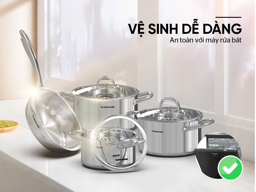 Bộ nồi chảo Inox 304 đáy liền Sunhouse SHG808 | Eco Mart |