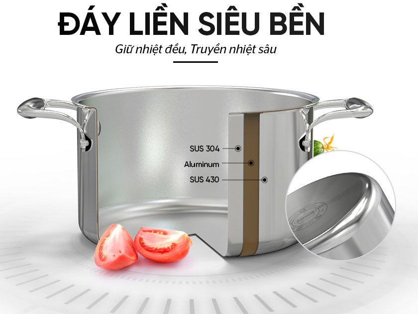 Bộ nồi inox Sunhouse SHG8185 5 đáy 3 chiếc | Eco Mart |