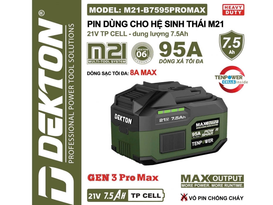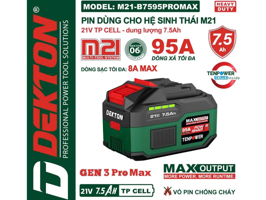 Pin 21V - 7.5Ah Dekton M21-B7595PROMAX