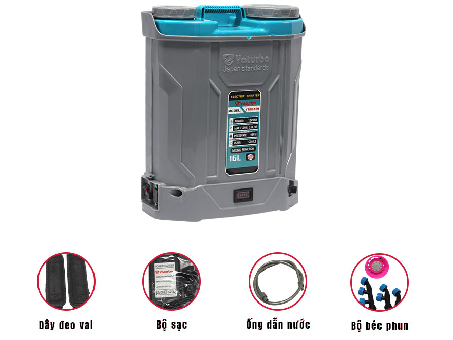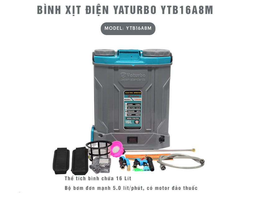 Bình xịt điện Yaturbo YTB16A8M (1 bơm, đảo thuốc)