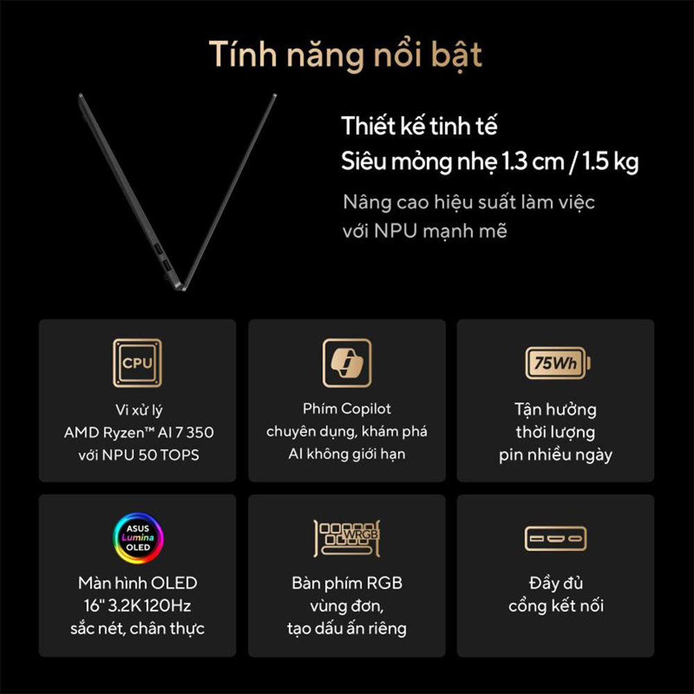 LAPTOP ASUS ZENBOOK S 16 UM5606KA-RK127WS (AMD RYZEN AI 7 350 PROCESSOR 2.0GHZ | 24GB | 1TB | AMD RADEON | 16 INCH 3K OLED | WIN 11 | OFFICE | TRẮNG)