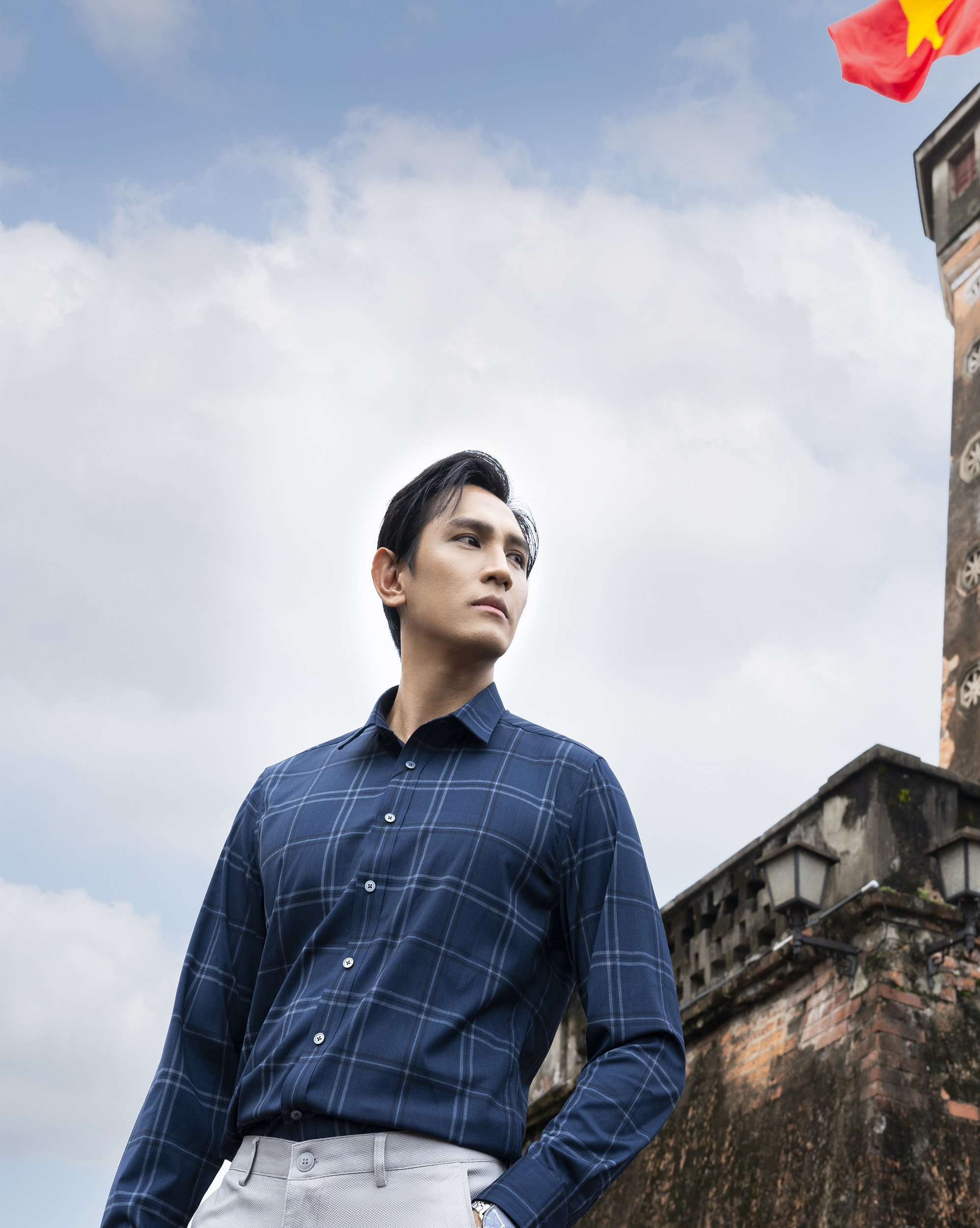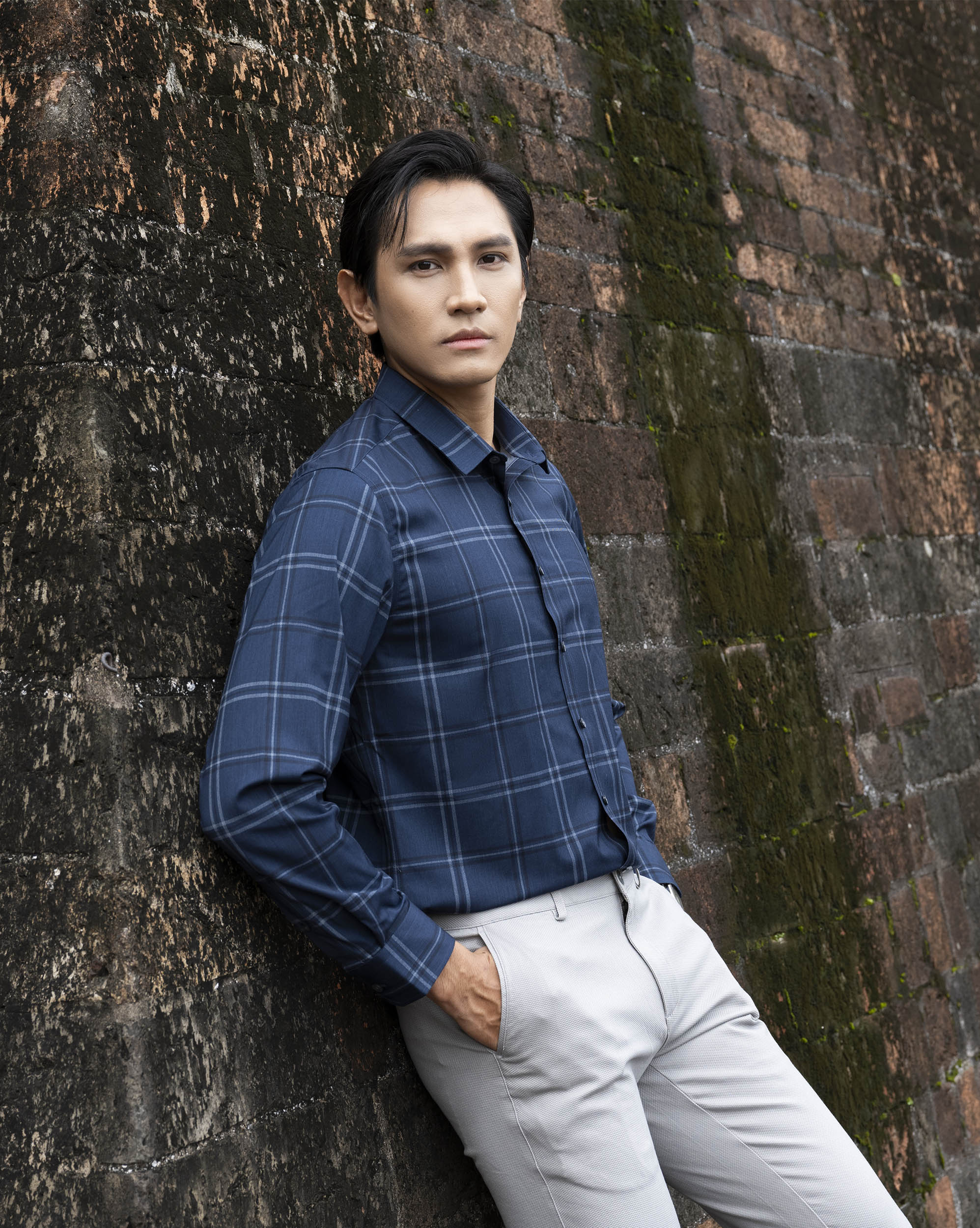 Áo sơ mi dài tay nam họa tiết kẻ ô màu xanh than 4048C